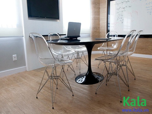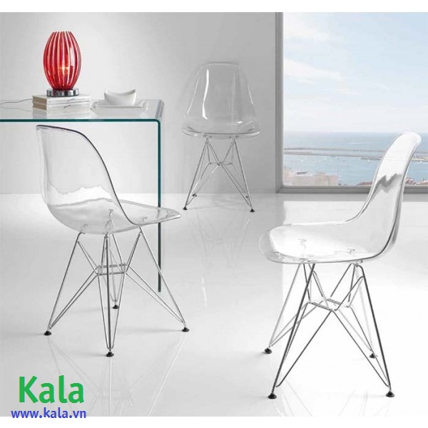 .Với chung cư cao tầng hay trong một ngôi nhà có diện tích vừa phải thì những đồ nội thất trong suốt là giải pháp tuyệt vời giúp không gian trở nên thoáng đãng, rộng rãi hơn. Ghế tựa Charles & Ray Eames DSW Clear Acrylic được thiết kế bởi bộ đôi Charles & Ray Eames DSW với chất liệu nhựa trong suốt sẽ mang đến cho bạn một không gian trong trẻo, ngập tràn ánh sáng. Bàn ghế Cafe