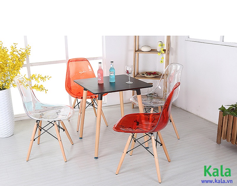 Ghế Eames DSW Clear với Chất liệu nhựa trong suốt không những không cản ánh sáng mà ngược lại, chúng giúp cho ánh sáng được hắt qua & trở nên lung linh hơn, bạn có thể nhìn xuyên qua ghế ở bất kì góc độ nào để thấy các vật dụng khác xung quanh nhờ đó mà sự hiện diện của những chiếc ghế không hề làm cho căn phòng của bạn trở nên chật hơn. Bàn ghế Cafe