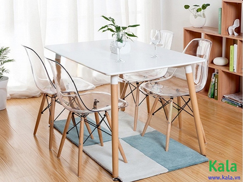 Với chung cư cao tầng hay trong một ngôi nhà có diện tích vừa phải thì những đồ nội thất trong suốt là giải pháp tuyệt vời giúp không gian trở nên thoáng đãng, rộng rãi hơn. Bàn ghế phòng ăn Ghế tựa Charles & Ray Eames DSW Clear Acrylic được thiết kế bởi bộ đôi Charles & Ray Eames DSW với chất liệu nhựa trong suốt sẽ mang đến cho bạn một không gian trong trẻo, ngập tràn ánh sáng.