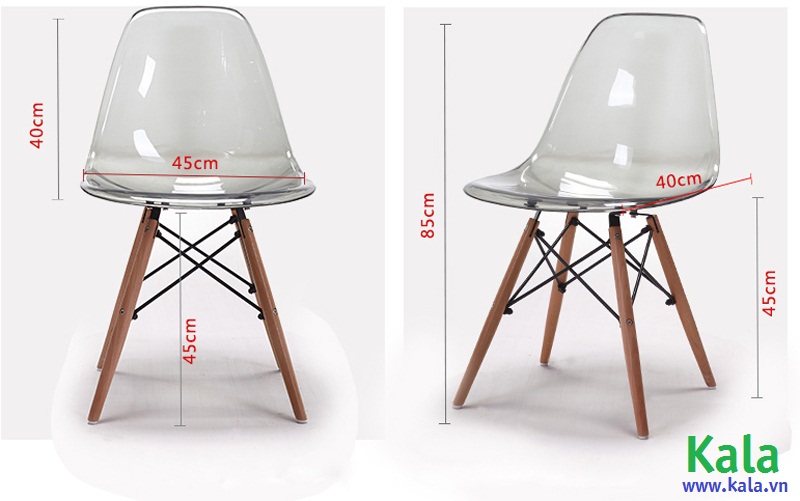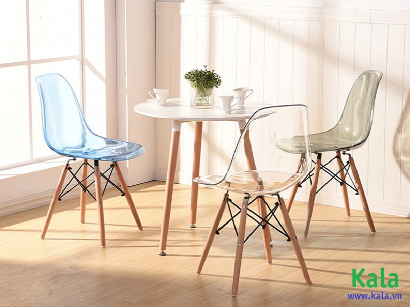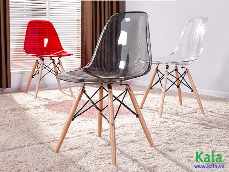 Ghế Eames DSW Clear với Chất liệu nhựa trong suốt nhìn xuyên thấu giúp chúng trở nên lung linh hơn, bạn có thể nhìn xuyên qua ghế ở bất kì góc độ nào để thấy các vật dụng khác xung quanh nhờ đó mà sự hiện diện của những chiếc ghế làm cho căn phòng của bạn trở nên nội bật nhất.