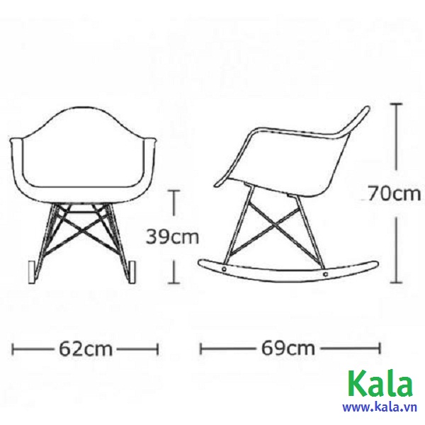 Ảnh 7: Kích thước ghế bập bênh Eames RAR Rocker.