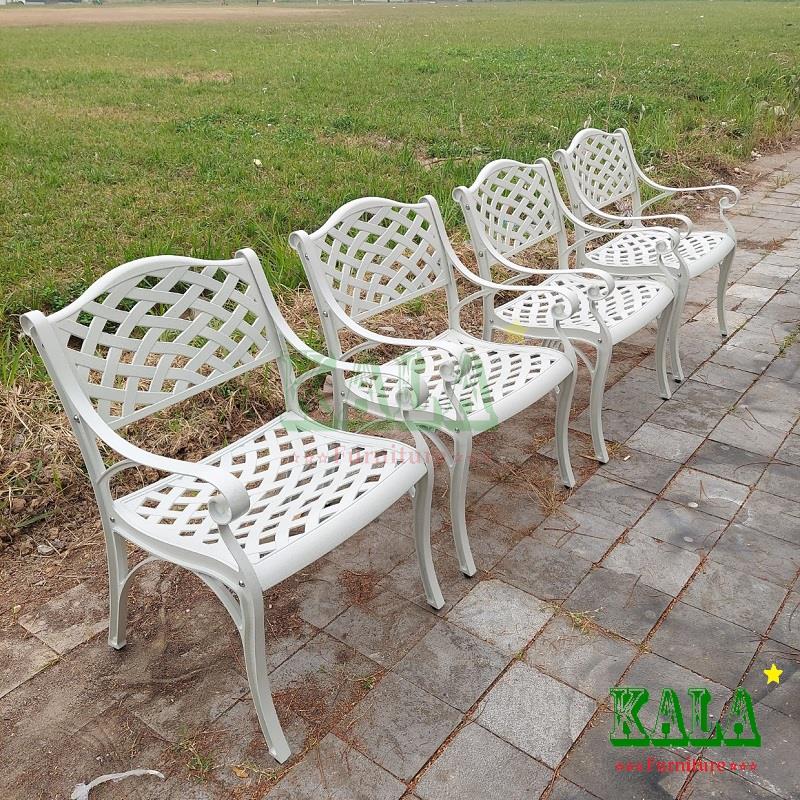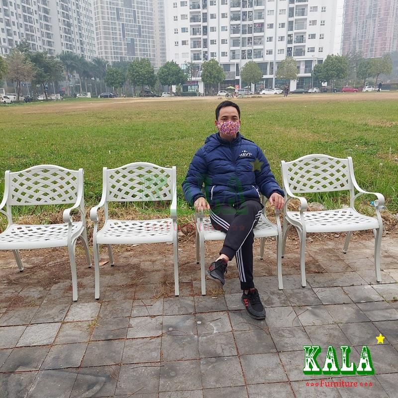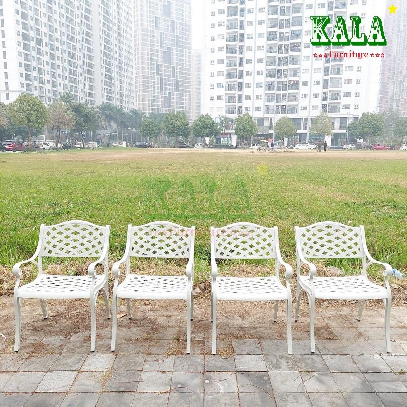 Ghế nhôm đúc có tay (Họa tiết quả trám) là mẫu ghế vuông có tay được nhiều người lựa chọn làm bàn ghế sân vườn, ban công,... Ghế được lắp ghép tháo rời một cách đơn giản nên vận chuyển rất tiện lợi, dễ dàng cho người dùng. Đối với không gian hiện đại người dùng nên dùng màu trắng. Còn với không gian cổ điển hay tân cổ thì dùng màu đồng.