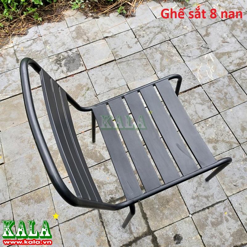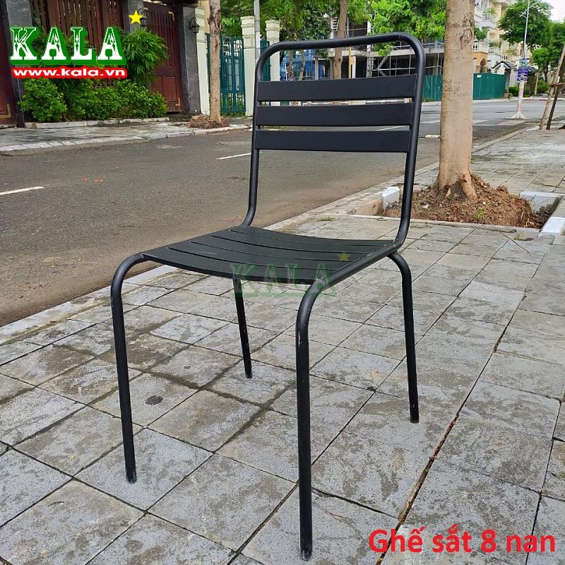 Ghế sắt 8 nan là mẫu ghế được làm hoàn toàn bằng sắt và sơn tĩnh điện tuyệt đẹp với thiết kế phần ngồi và lưng tựa bằng sắt các nan được xếp song song tạo sự thanh thoát rất đẹp thường dùng trong những quán cafe, quán ăn, nhà hàng hay dùng trong không gian sân vườn.