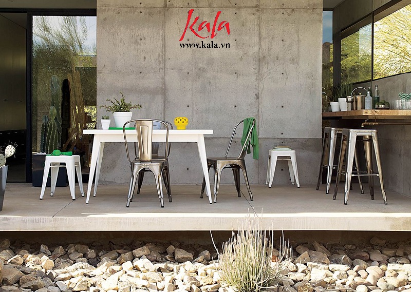 Dù kết hợp với mọi không gian thì ghế Tolix luôn làm nổi bật với sự chắc chắn, đường nét tinh tế thanh thoat nhất là với quầy bar, hành lang, lối, sảng ban công giúp bạn ngắm không gian xung quyanh rất thoải mái không bị khuất tầm nhìn. Bàn ghế Eames