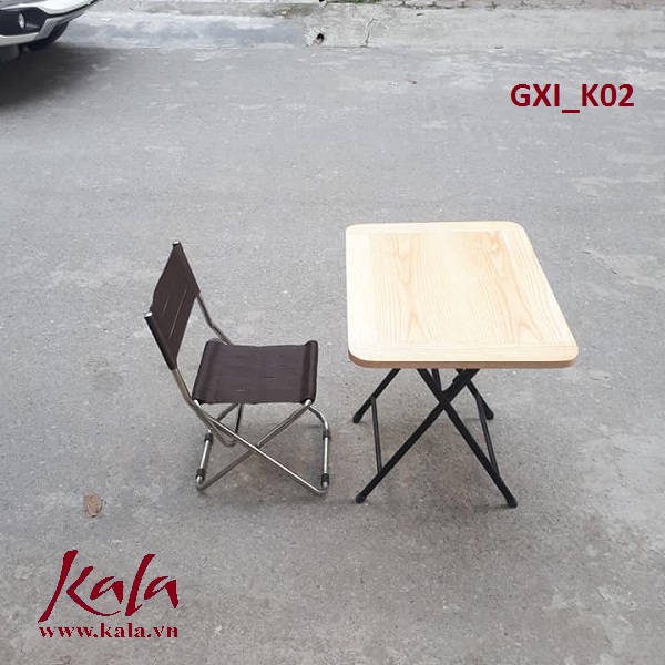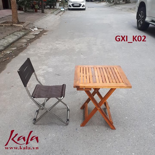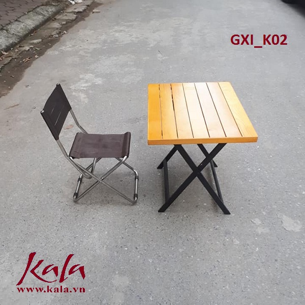 Khi kết hợp ghế dù xếp inox GXI_K01 với bàn gấp gọn được làm bằng knung sắt mặt gỗ rất chắc chắc tạo nên một không gian đơn giản mộc mạc gần gũi với mọi không gian.