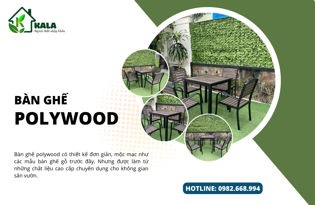 Bàn ghế polywood thường có thiết kế đơn giản như các mẫu bàn thông thường, đem đến cho không gian của bạn sự gần gũi, thân thuộc. Bàn ghế cũng có nhiều kích thước khác nhau để phù hợp cho nhiều không gian khác nhau cho mọi người lựa chọn. Xem thêm các mẫu ->>