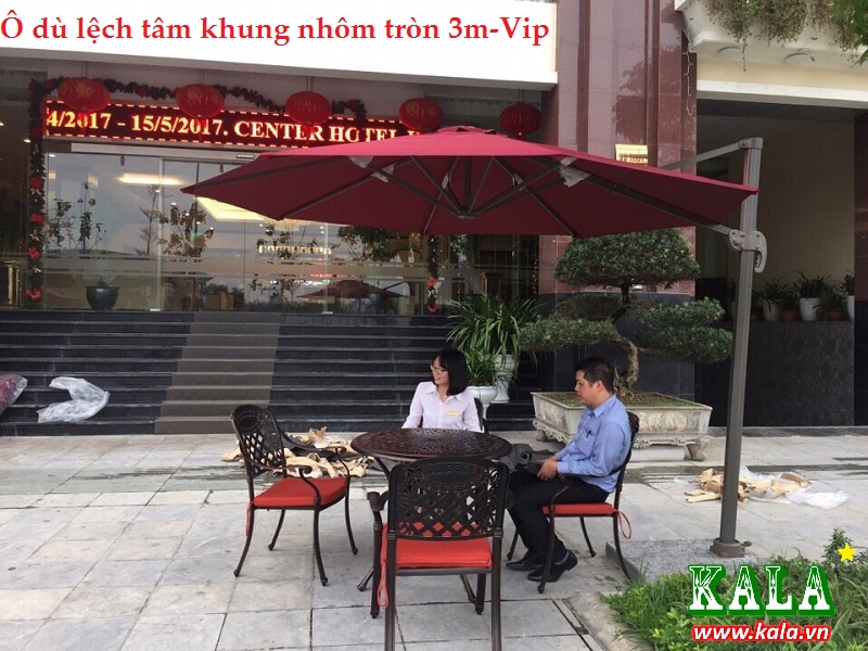 Ảnh 6: Ô dù lệch tâm khung nhôm tròn 3m VIP là dòng ô sang trọng và đẳng cấp với phần khunh được làm bằng nhôm dầy dặn và chắc chắn, thân ô với các nan khá to và rất vẫng chắc, vải được làm bằng Polyester dầy hơn so với những mẫu ô thông thường để có thể chịu được Nội Thất KALA cũng phải thiết kế chân đế Ô làm sao cho phù hợp với chiếc Ô siêu víp này.