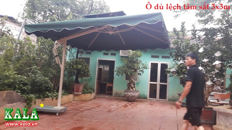 Ảnh 8: Ô dù lệch tâm sắt 3x3m là mẫu ô có kích thước khá lớn thường dùng trong những quán cafe, resshop, sân vườn, rất phù hợp. Với phần khung được làm bằng khung sắt rất chắc chắn, áo ô được làm bằng vải POLYESTER chịu nắng mưa rất tốt