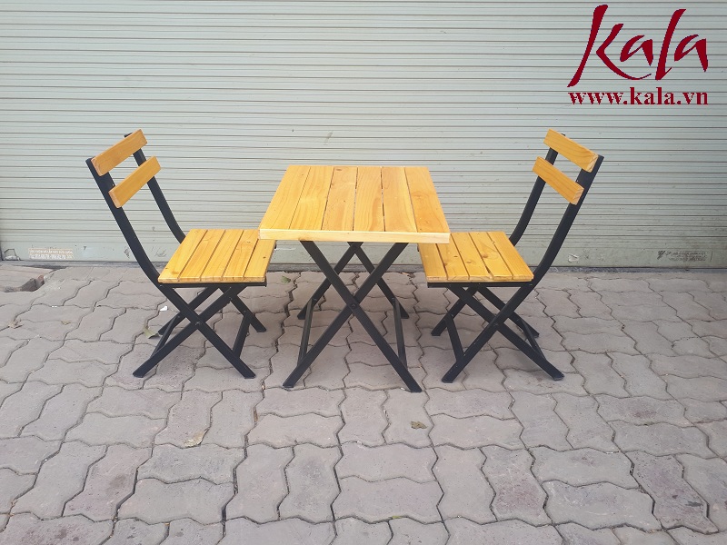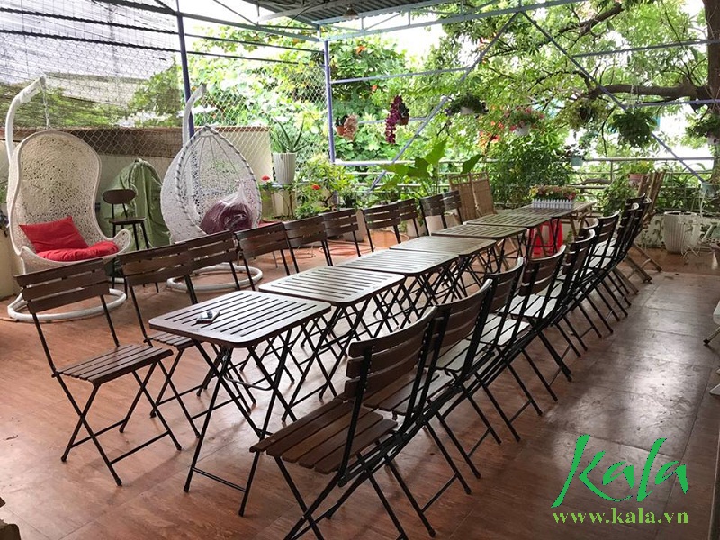 Ảnh 4: Bàn ghế cafe IKEA mini được làm bằng khung sắt rất chắc chắn kết hợp với gỗ màu vàng càng làm tăng sự đặc biệt cho bộ bàn ghế là là sự lựa chọn hoàn hảo cho không gian ngồi vỉa hè, có thể gấp gọn rất tiện lợi.