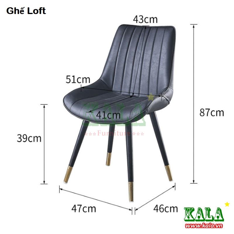 Nhìn từ xa, ghế loft có kiểu dáng giống giống ghế Nelson, nhưng ghế loft được bọc đệm da sọc dày hơn, nên khi ngồi sẽ êm hơn, thích hơn. Chân ghế Loft được làm bằng ống côn 30mm vuốt xuống 10mm trông rất tinh tế và hiện đại mà vẫn giữ được sự cứng cáp, chắc chắn. Phía cuối chân được bọc thép mạ đồng làm tăng vẻ sang trọng cho ghế và còn giúp ghế chắc chắn hơn, chống trơn trượt mà không bị xước sàn.