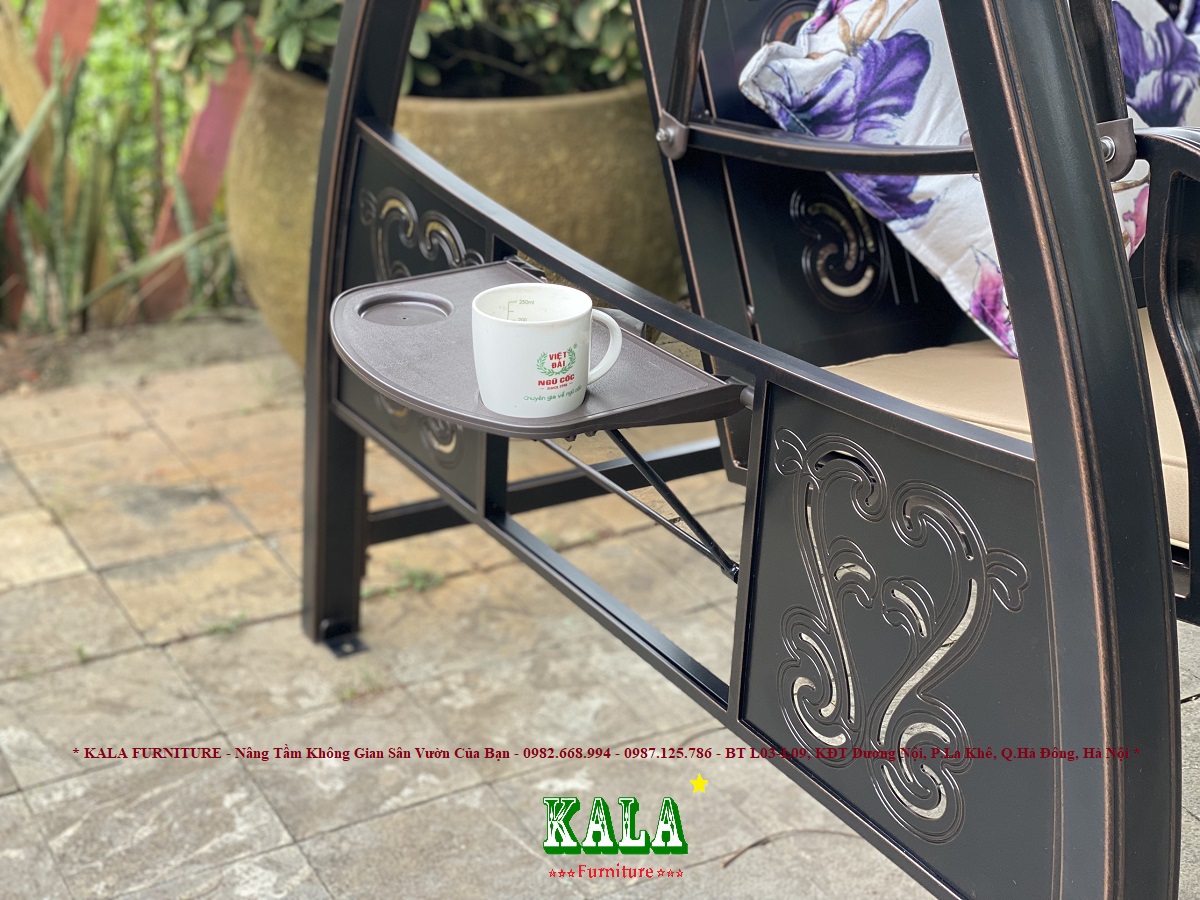 Phía bên cạnh xích đu còn có phần đỡ để nước, để điện thoại, để sách vô cùng tiện lợi với người dùng.