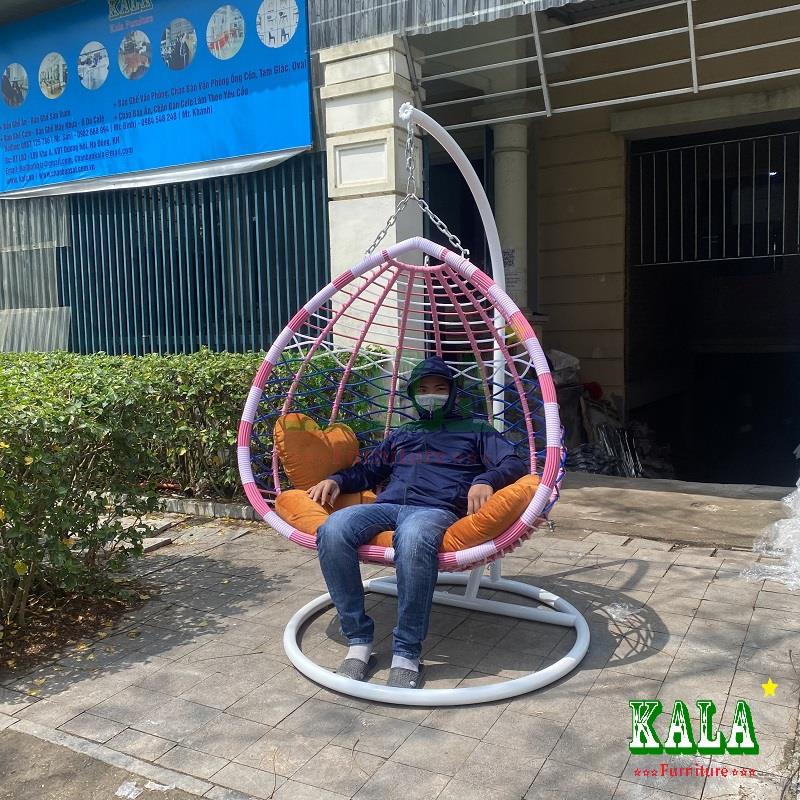 Tổng thể xích đu được kết hợp bởi màu trắng và hồng rất cute phù hợp với các bạn nữ hay gia đình có trẻ nhỏ (đặc biệt là các bé gái).